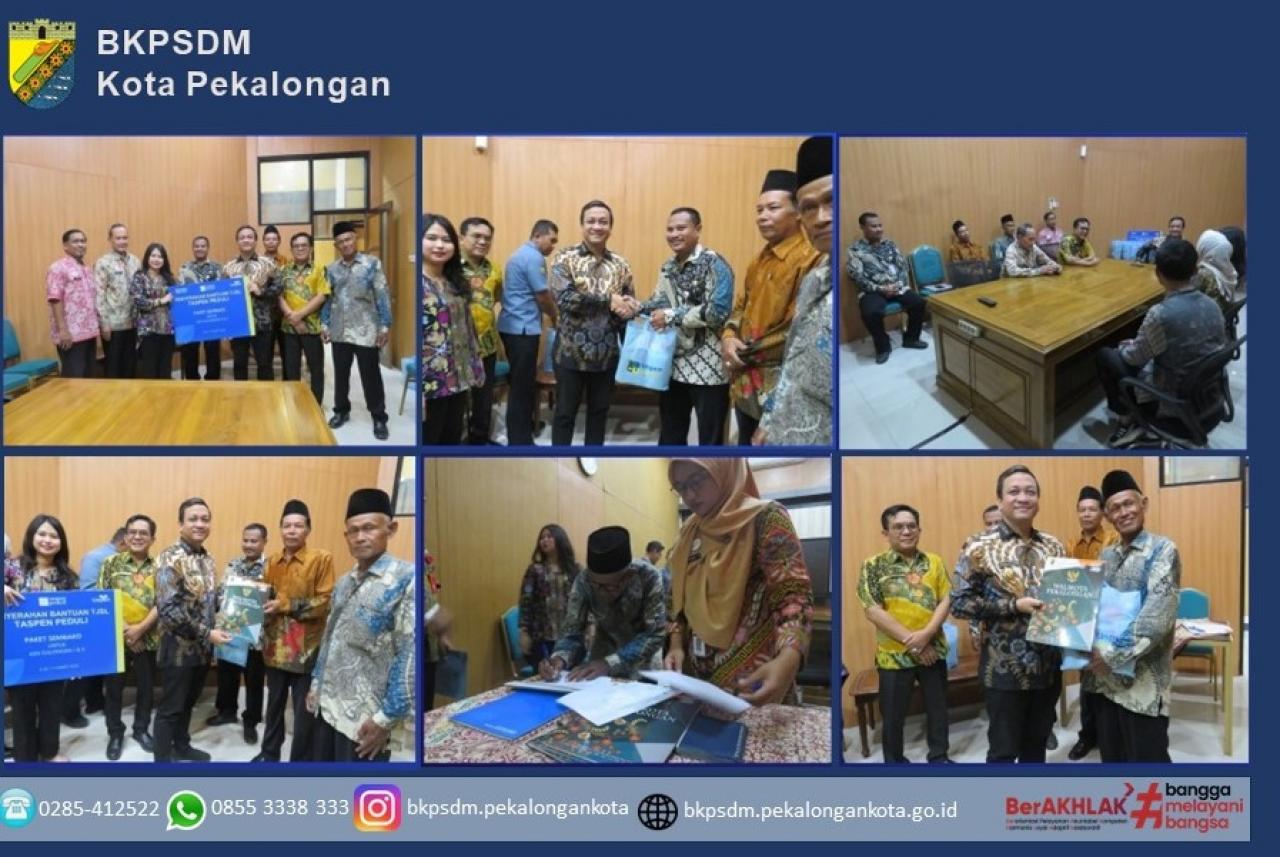 Penyerahan Bantuan 30 (Tiga Puluh) Paket Sembako Gratis dari PT. Taspen secara simbolis diserahkan secara langsung oleh Wali Kota Pekalongan H. A. Afzan Arslan Djunaid, S.E., M.M. didampingi oleh Sekretaris Daerah Kota Pekalongab, Nur Priyantomo, S.E., M.M., Kepala BKPSDM Kota Pekalongan, Rusmani Budiharjo, A.KS., M.M, dan Kepala PT Taspen Cabang Pekalongan. Bersamaan dengan acara tersebut, Bapak Wali Kota juga menyerahkan secara simbolis Tali Asih dari Bank. Pekalongan dan BAZNAS kepada perwakilan PPPK dan PPPK Paruh Waktu yang purna tugas karena mencapai Batas Usia Pensiun dalam Jabatan TMT 1 Desember 2025 s.d. 1 Maret 2026.