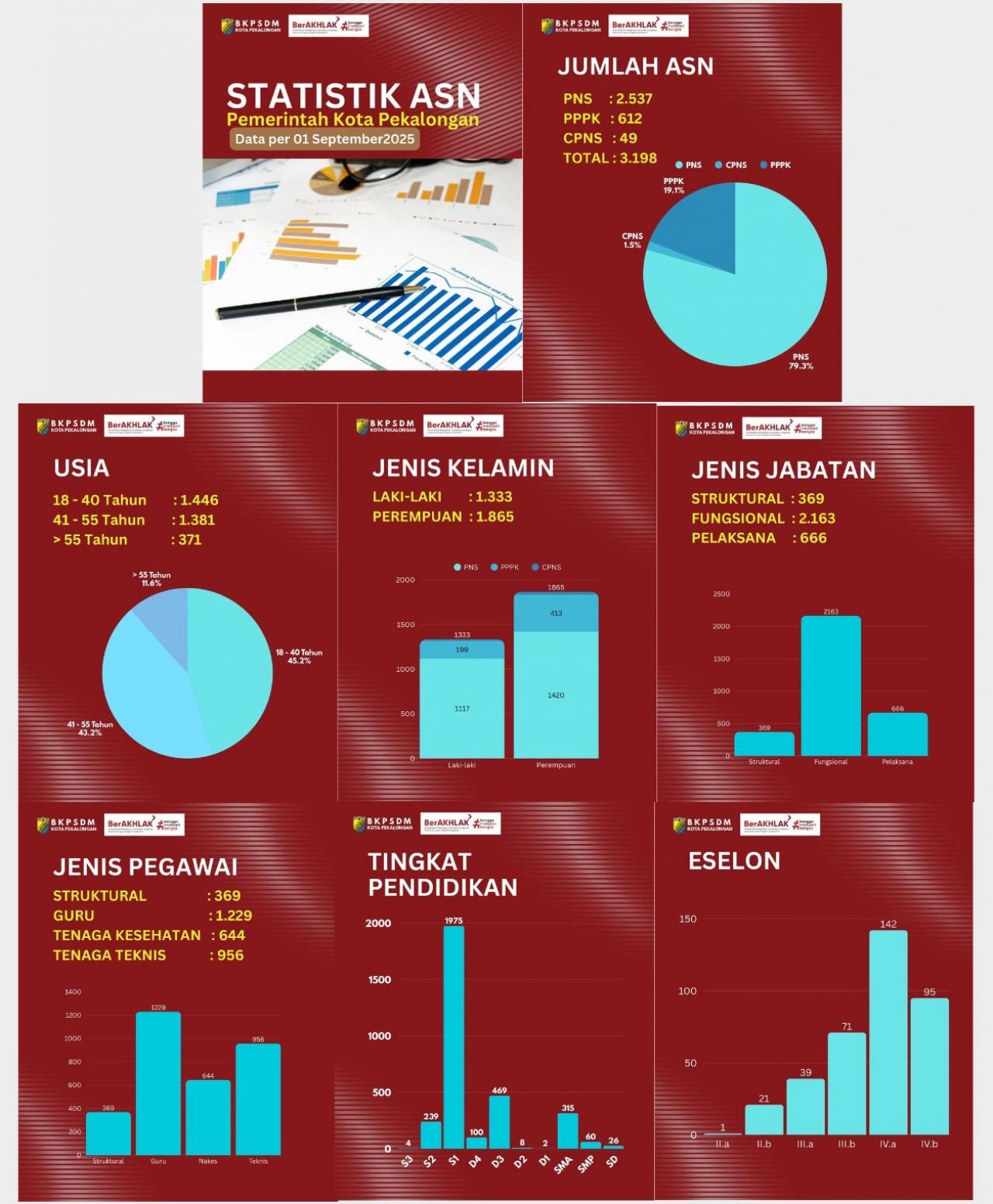 Statistik ASN Kota Pekalongan per 1 September 2025 BKPSDM 1 September 2025 [09:41:54] 128 PEMERINTAHAN PRINT + DOWNLOAD PDF Statistik ASN Kota Pekalongan per 1 September 2025
